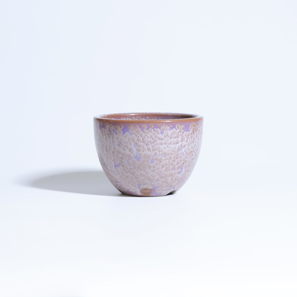 「藤鱗」は窯元の陶葊が得意とする「結晶釉」で焼き上げたもの。藤の花びらのような絢爛たる結晶模様が浮かび上がり、なんとも雅で摩訶不思議な奥行きが感じられます。どのような模様になるのかは神のみぞ知る。———無限の可能性を秘めた、人がコントロールできない自然発生的な美。 ひとつひとつが唯一無二の鱗を纏う植木鉢。